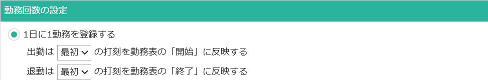 打刻時間でそのまま集計するのか(1)、申請時間で集計するのか(2)を設定します。