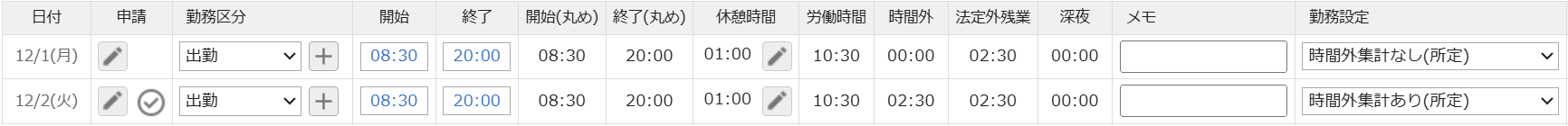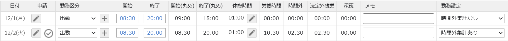 - 朝残業のみ申請制とし、夜残業は自動集計としたい